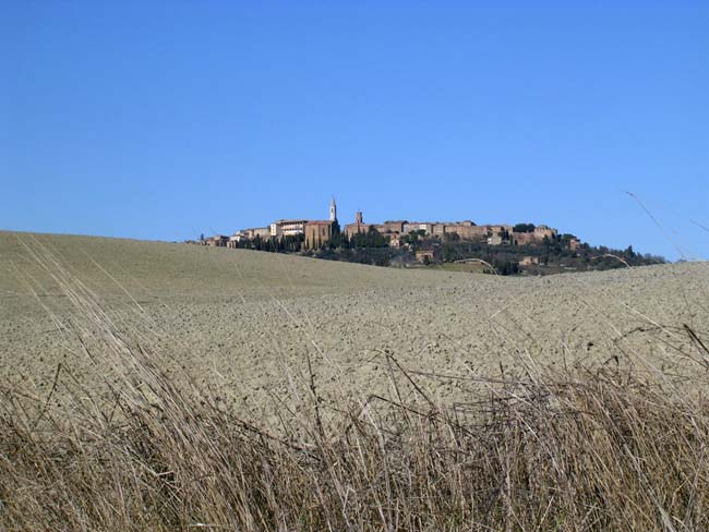 Pienza, la città "nata da un pensiero d'amore e da un sogno di bellezza", come scrisse Giovanni Pascoli. Gran parte della sua architettura più bella fu fatta realizzare da Papa Pio II, trasformando il borgo natale di Corsignano in una splendida cittadina |